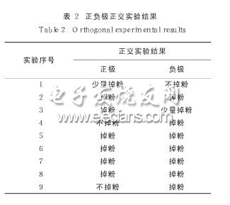 实验结果如表2所示,以极片是否掉粉为实验指标。由表可知掉粉现象较为严重,而且组装成的电池均不能放电,电池的开路电压绝大多数在零附近,放电容量和放电时间几乎为零。