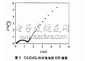 图3是C/LiCoO2扣式电池的EIS谱图。