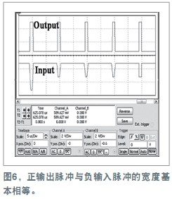 图5中的电路更进了一步。它使用一只廉价的LM211或LM311 IC比较器,产生的正输出脉冲完全相等于输入脉冲的宽度,而电平可调(参考文献1)。电阻R3与R4设定了比较器的阈值电压,但它取决于负电源的电压值。用方程VT−=[V−/(R2+R4)]×R4可以计算出阈值电压,其中V−是负电源电压。图6给出了电路的波形。