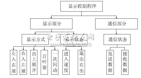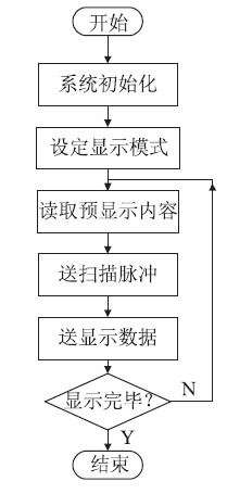 下位机软件设计分为两大功能块: 显示部分和通信部分。显示部分采用动态扫描的方式,实现对显示屏要显示的汉字、图象、字符等数据信息进行传输控制以及显示等功能。与PC 机的实时通信部分主要是利用单片机串口中断接收和发送数据信息,实现与计算机的实时数据信息传输。程序可以实现与计算机的通信,可非常方便地任意修改所要显示的汉字、图像等; 并使显示屏可按你选择显示方式进行汉字或表格显示。设计程序的流程图如图2 所示。