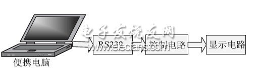 LED 点阵显示系统由计算机、RS-232 通讯电路、控制电路和LED 点阵显示电路构成,结构框图如图1 所示。
