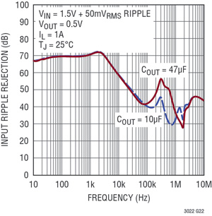图3 LT3022的输入纹波抑制性能