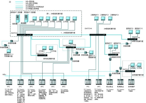 随着工业控制技术的快速发展,生产过程控制越来越依赖于网络,工业网络应用从分布式总线到工业以太网,以及更快的内存映像网等,应用种类越来越多,速度也越来越快。怎样合理搭配网络资源,做到既能使网络控制快速高效,又要合理利用网络资源,不盲目求快求大,就成了现场工程师们研究的主要课题。近几年来,随着国家发展循环经济思想和可持续发展战略的深入贯彻,冶金生产中对烧结矿的产量和品质提出了更高的要求。某单位烧结机改造项目中,在原有2×120平方米烧结机的基础上,增设了3#烧冷机组,扩容原有配料、混料、成品等系统,利用这次机会,有关单位和现场技术人员,在多种网络协同控制方面进行了有针对性地研究和应用,取得了很好的效果和效益。