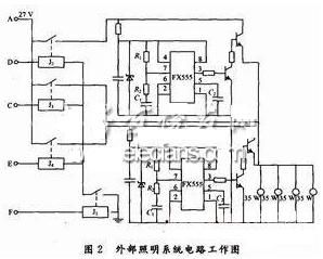 以FX555工作在无稳态模式时为核心的外部照明电路设计如图2所示。