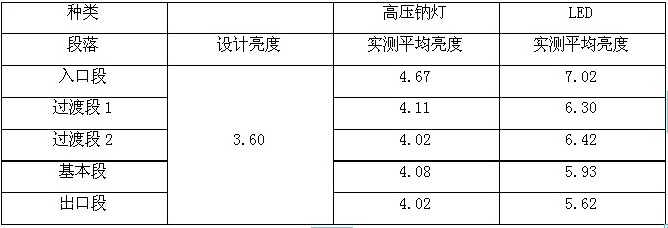 通过对比,可以看到LED灯具的各段亮度比高压钠灯要高,根据实际用电量测量结果知道,每年LED可比高压钠灯节约有点量201079度,节电高达53.14%,按0.8元/度计算,每年可节约电费160862.8元。故在满足亮度要求下,LED具有显著的节能效果。