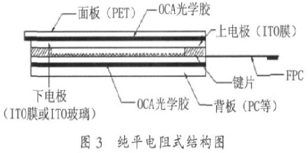 传统的手机电阻触摸屏与手机机壳装在一起,是有凹凸面的,结构不密封。现在市场上具体应用得比较前端的是采用TOUCH LENS 技术的一种触摸屏,中文俗称为"镜面式触摸屏"、"纯平触摸屏"等,现在已经得到广泛认可和应用,以苹果iPhone 为主要推动力量,它分为电阻式和电容式,iPhone 就是用电容式技术的,此前市场上应用比较多的是电阻式,其工作原理同传统电阻式触摸屏一样,结构如图3 所示,图4所示为从手机屏幕面所看到的一个纯平效果的例子。