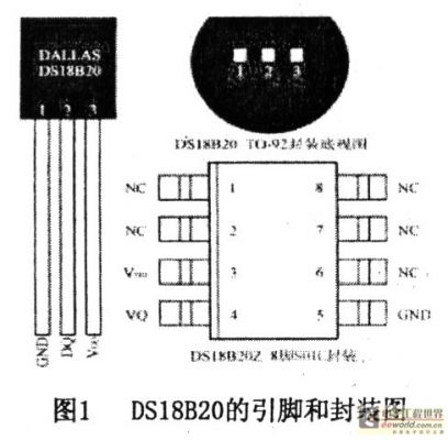 DS18820数字温度计是DALEAS公司生产的1一Wire,即单总线器件,属于新一代适配微处理器的智能数字温度传感器。将温度感测、信号变换、A/D转换和加热功能集成到一个芯片上,采用T0—92封装,接口非常简单。其引脚和封装如图1所示,DQ为数字信号输入/输出端;GND为电源地;VDD为外接供电电源输入端(在寄生电源接线方式时接地)。