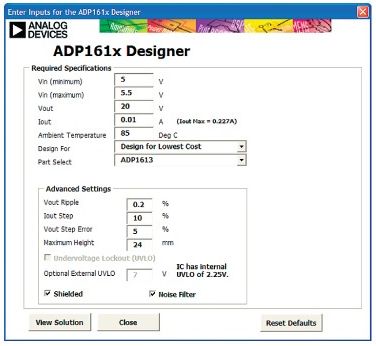 图8.ADP1613升压转换器EXCEL设计工具