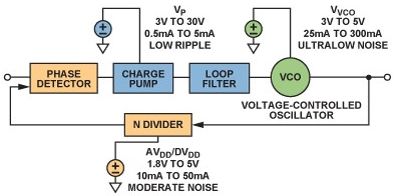 图1.显示各种电源管理要求的基本锁相环