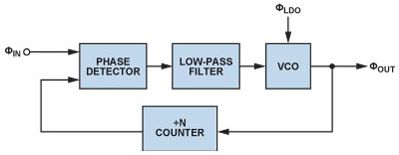 锁相环" title="锁相环">锁相环(PLL" title="PLL">PLL)是现代通信系统的基本构建模块PLLs通常用在无线电接收机或发射机中,主要提供"本振"(LO)功能;也可用于时钟信号分配和降噪,而且越来越多地用作高采样速率模数或数模转换的时钟源。由于每一代PLL的噪声性能都在改善,因此电源噪声的影响变得越来越明显,某些情况下甚至可限制噪声性能。本文讨论图1所示的基本PLL方案,并考察每个构建模块的电源管理" title="电源管理">电源管理要求。
