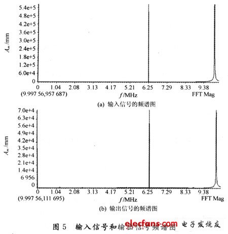 图5为输入、输出信号的频谱图。