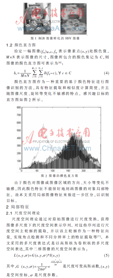 实际意义的目标大都处在复杂背景之中,目标检测很困难。成像条件变化使目标的图像发生变化,背景的空间时间变化使目标相对于背景的可观察性发生变化,这些因素将影响现有常规目标提取算法和系统的可靠性和稳定性。近年来,目标识别成为研究的热点,林玉池[1]等提出基于形态学多结构原边缘提取算子,很好地提取了复杂背景下的目标边缘,较好地解决了复杂背景下的目标识别的难题。张铁柱[2]等提出了利用车载雷达和红外成像传感器数据融合的智能目标识别算法,融合效果优于单个效果的识别。陈芳涵[3]等采用小波多尺度积德方法提取目标图像的边缘,解决了复杂背景下目标图像的识别问题。这些大多是单一特征的识别,本文提出了一种新的全局和局部特征信息融合的算法,充分利用了全局和局部信息的互补关系,在目标识别上取得了良好的识别效果。