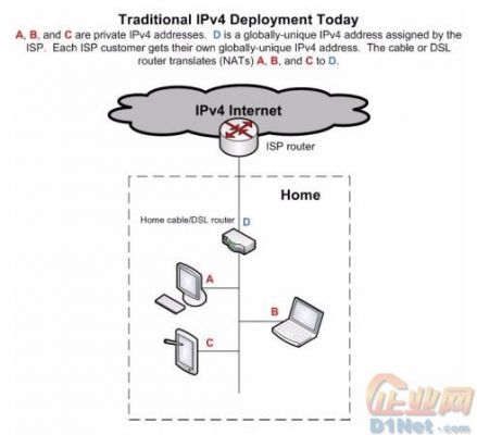 ISP的问题是没有足够的全球唯一的IPv4地址(在表中的D)分配给每一个新用户。因此,他们增加另一个网络地址解析层。