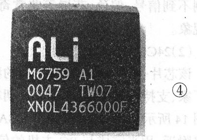 这是ACER公司生产的M6759,芯片实物如图4所示。该MCU主要在早期由冠捷公司生产液晶中使用,主要有联想、方正、AOC等。故障表现为,使用一段时间后出现黑屏死机情况,必须断电才能开/关机。解决该故障,也必须换用全新的MCU.不过,因为该MCU上市时间较早,市场上翻新的MCU比较多。