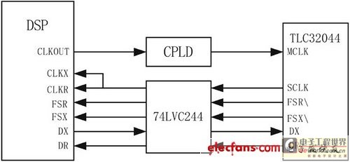 图3 DSP与DAC、ADC的接口电路