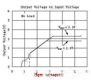由此得出低压差线性稳压器(LDO)的一个重要特性,在输入电压大于最小工作电压和输出电压其标称值范围内,负载电流为零时,输出电压随输入电压的变化而变化,这就是LDO的跟随特性,待输出电压达到其标称值后不随输入而变化,从而达到稳压的目的,这就是LDO的稳压特性。如图为圣邦微电子的SGM2007输入电压和输出电压的曲线。