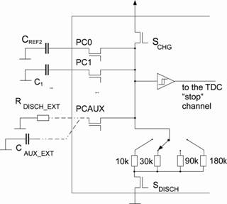 电容首先被充电到电源电压,然后通过电阻进行放电。而放电到一个可控制阚值电压的水平将会被芯片内部的非常高精度时间数字转换器TDC所记录下来。