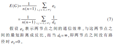 目前,普遍使用的衡量网络特性的指标是效能函数。整个网络G的功效性指标定义如下: