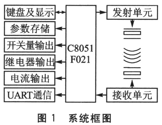本系统以美国Silab的高速混合信号ISP Flash微控制器C8051F021为核心。衰减法超声波浓度计在超声波发射和接收的时序上需要精确的控制,这不仅需要处理器的速度快,而且需要多个定时器;由接收单元返回的是低于2.5 V的电压信号,需要经过精确的A/D采集转换成数字信号传递给CPU处理。C8051F021的特点如下;