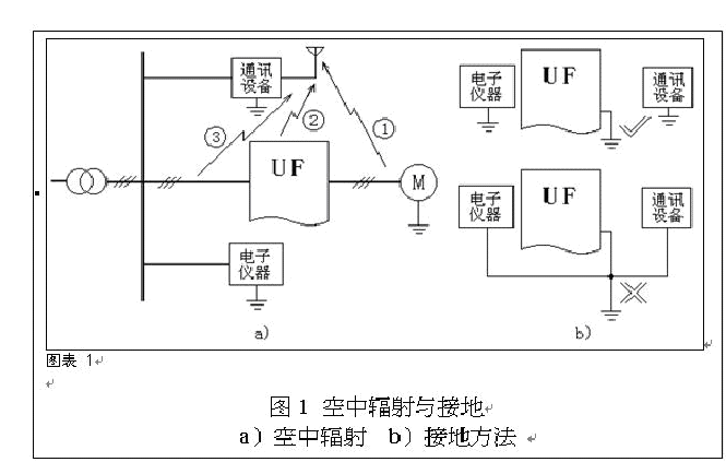 变频电路中,频率很高谐波电流分量具有向空中辐射能力,对其他设备形成干扰。尤其通信设备干扰更为严重,如下图1所示。