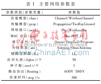 本文使用NS2-2.30进行仿真实验,天线通信范围为250 m,主要网络参数如表1所示。