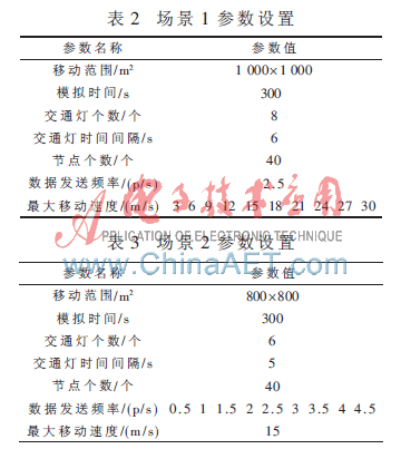 本文所使用的模拟场景由上述的VanetMobiSim所产生,共有两个模拟场景,分别如表2和表3所示。