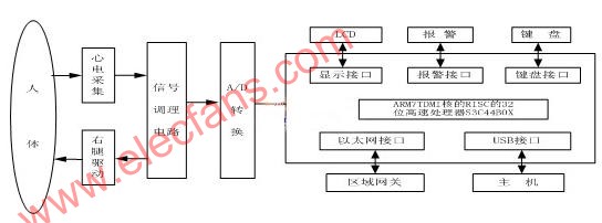 图一 新型嵌入式心电监护仪的系统结构框图