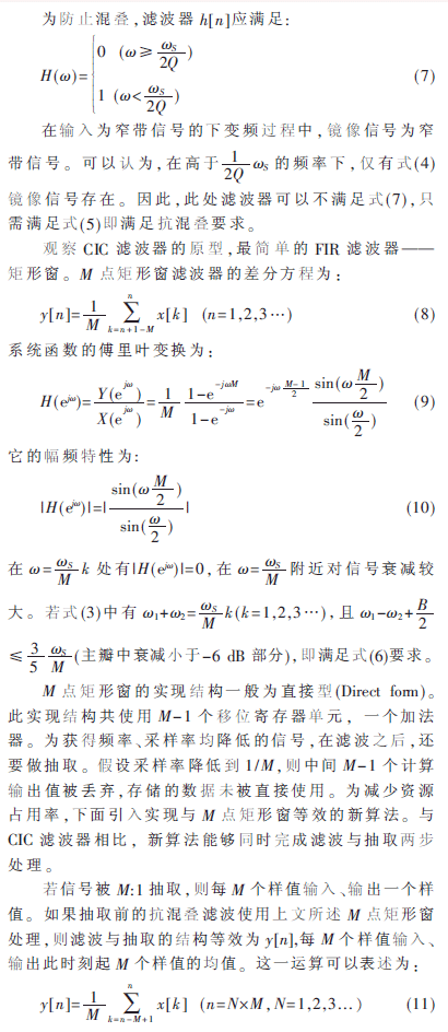 本文主要研究一种适用于微纳卫星通信系统的窄带信号数字下变频的M点平均降速算法。该算法采用数据移位和减少数据位宽来减少运算量和抽取量,并同时完成滤波和抽取两步处理。
