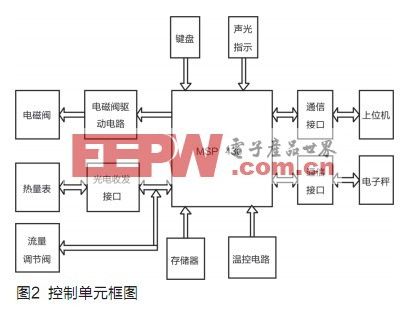 本系统的控制单元框图如图2所示,主要由键盘电路、温控电路、电磁阀控制电路、光电收发接口电路、通信接口电路、声光指示电路组成。采用MSP430F149单片机为控制核心,外接6MHz晶振。