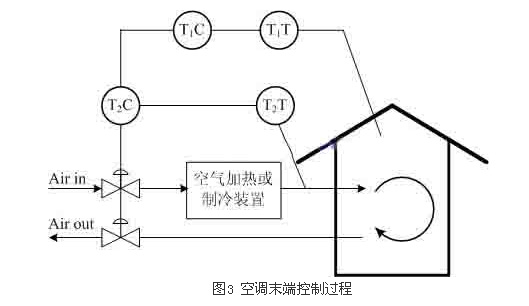 对于象PHOENIX厂房这种空间比较大,而且温度控制精度要求较高的空调系统,我们结合过程控制理论,提出基于串级控制的VAV末端控制方案。控制过程如下: