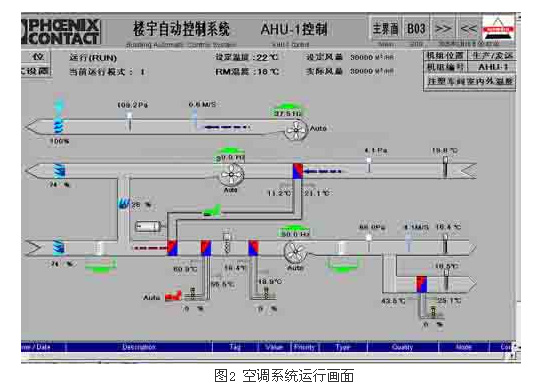 整个楼宇自动化系统,空调机组系统为控制部分的重点,以下是PHOENIX厂房楼宇自动化系统的1#空调机组运行画面。