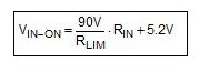 现场输入导通阈值电压 VIN-ON,与电流限制、输入电阻器以及器件输入的导通阈值电压 VIP-ON 有关。VIP-ON 等于内部电压检测比较器的固定 5.2V 基准电压。因此,VIP-ON 可以表示为: