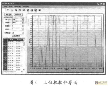 上位机软件主要通过C#实现,通过调用串口实现对下位机的控制及数据的后续处理,并能够实时显示采集数据波形并保存。界面如图6所示
