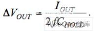 在第二阶段,C1 +连接到输出,放电电流(电流大小与前面的充电电流相同)通过C1流到负载。在这个阶段,输出电容电流的变化大约为2 IOUT。尽管这个电流变化应该能产生一个输出电压变化为2 IOUT ESRC_HOLD,使用低ESR的陶瓷电容使得这种变化可以忽略不计。此时,CHOLD按下面的电量线性电位充电︰