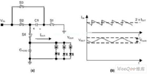 白光LED通常由一个恒定直流电流源驱动,以保持恒定的亮度。在采用单颗锂离子电池供电的便携式应用中,白光LED以及电流源上的电压降之总和可以比电池电压更高或更低,这意味着白光LED某些时候需要对电池电压进行升压。完成这样应用的最好办法是使用升压DC-DC转换器。这种方法可以大大地优化效率,但代价是成本和PCB面积增加。另外一种提升电池电压的方法是使用电荷泵,也称为开关电容转换器。本文将详细地分析这种器件的工作原理。