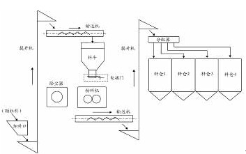 下面介绍原粮粉碎工段控制系统的主要控制工艺流程特点: