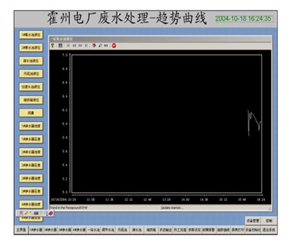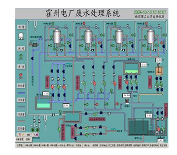 系统可对废水处理装置的各项仪表数据实时的在线监视,并且生动直观的反应在监控界面上面。系统的刷新数据是1秒,历史的保存间隔是2分钟。图12为废水处理系统工艺监控界面。