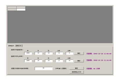 报表打印可以根据操作员的要求,生成符合要求的系统报表,并且打印。也可以设定让系统自动的根据间隔的时间实时的打印报表。图16所示为报表打印界面。