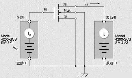 - 采用两台SMU来测量MOSFET的亚阀区电流