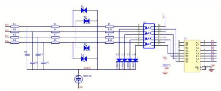 印制板设计时,要考虑到干扰对系统的影响,将电路的模拟部分和数字部分的电路严格分开,对核心电路重点防护,将系统地线环绕,并布线尽可能粗,电源增加滤波电路,采用DC-DC隔离,信号采用光电隔离,设计隔离电源,分析容易产生干扰的部分(如时钟电路、通讯电路等)和容易被干扰的部分(如模拟采样电路等),对这两种类型的电路分别采取措施。对于干扰元件采取抑制措施,对敏感元件采取隔离和保护措施,并且将它们在空间和电气上拉开距离。在板级设计时,还要注意元器件放置要远离印制板边沿,这对防护空气放电是有利的。样电路的原理图设计参见图1。