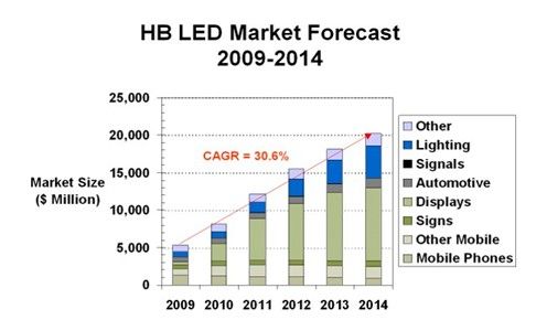 根据 Strategies Unlimited 公司的数据 (参见图 1),到 2012 年,高亮度 (HB) LED 的市场规模预计将达到 120 亿美元,到 2015 年,该市场将增长到 202 亿美元,年复合增长率为 30.6%。目前,用来给显示器进行背光照明的 LED 是这种前所未有的增长的主要驱动力。应用包括高清电视机(HDTV)、汽车显示器和大量手持式设备。为了保持这种令人惊叹的增长率,LED 不仅必须提供增强的可靠性、更低的功耗和更小 / 更扁平的外形尺寸,而且必须实现对比度、画面清晰度和色彩准确的明显改进。此外,汽车、航空电子设备和航海电子产品的显示器必须最大限度地实现所有这些改进,同时能接受从明亮的太阳光到没有月亮的夜晚等多种环境照明条件。这些由晶体管液晶显示器(TFT-LCD) 实现的显示应用包括信息娱乐系统、计量表和种类繁多的仪表显示器。用 LED 对这些显示器进行背光照明引起了一些独特的 LED IC 驱动器设计挑战,因为要在多种环境照明条件下优化显示器的可读性。这要求 LED 驱动器能提供非常宽的调光比和高效率转换,同时能承受汽车中相对苛刻的电及物理环境的严酷性。最后,这些解决方案必须提供非常扁平、紧凑的占板面积,同时提高性价比。