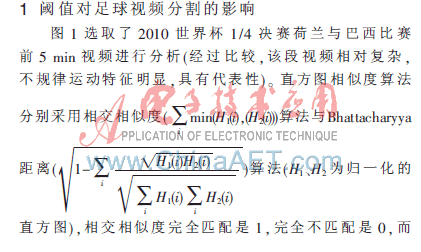 关键词: 足球视频OpenCV自适应双阈值; 镜头边界检测