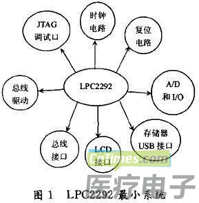 ARM 7系列芯片LPC2292最小系统如图1所示: