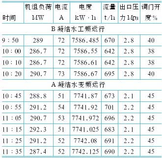 表1 #4机组凝结水变频节能测试记录