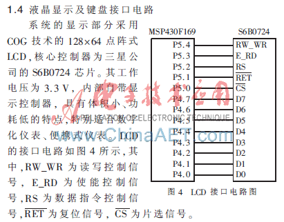 MSP430F169的P1.1~P1.5连接5个独立按键,其中4个用于调整心电波形显示的周期和幅值,1个用于串口数据发送。