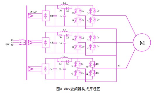 见图3。对于3kv变频器,变压器每相采用一个功率单元的形式,功率部分只需3个功率单元。