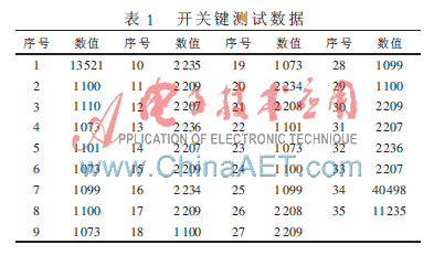 数据分析:以开关键为例,采到的数据如表1所示。
