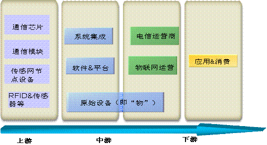 物联网时代,海量数据传输和处理需求对传输网络提出了更高的要求,这将促使运营商对现有网络进行扩容和升级,这将给通信设备制造商提供难得的发展机遇。另外,从产业链角度来看,还将给通信芯片、RFID/传感器产业、系统集成、电信运营商等带来巨大的产业机会。从受益时间的角度来看,物联网的发展首先受益的是RFID和传感器厂商,接着是系统集成商,最后是物联网运营商。这是因为:第一、RFID和传感器需求量最为广泛,且厂商目前最了解客户需求;第二、物联网涉及众多技术和行业,系统集成需求巨大,且系统集成商有可能掌控上游供应商;第三、随着物联网的发展,物联网的应用将从行业垂直应用向横向扩展,对海量数据处理和信息管理需求将随之提高,同时也将凸显物联网运营商在产业链的重要地位。但从增长空间的角度看,增长最大的是物联网运营商,其次是系统集成商,最小的是RFID和传感器供应商。这是因为:第一、未来物联网具有海量信息的处理和管理需求、个性化的数据分析要求的特点,必将催生物联网运营商的需求量,且未来很可能形成寡头垄断的格局;第二、系统集成的需求将远高于目前电信网和互联网的需求;第三、RFID和传感器厂商由于核心技术掌握度较低,很可能形成完全竞争的格局。