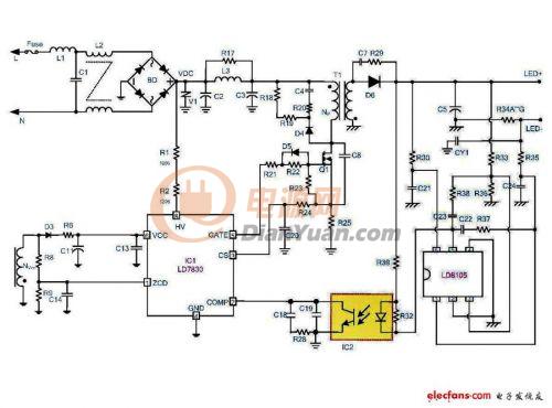 LD7830的典型应用为反激拓扑结构,如图一所示。