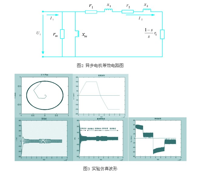 从图3波形可以看出,异步电动机处于加速减速反转等运行状态,从正向加速到回馈制动,最后到反向加速至稳定状态,实现异步电动机的四象限特性。
